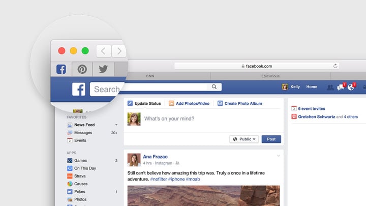 新系统 EI Capitain 加入了许多手势交互的小特性:来回抖一抖显示光标;在邮件应用中像 iOS 一样左滑可删除邮件;在 Safari 从右往左拖标签,可以固定标签页。你还可以在 Safari 中直接对多媒体进行控制,包括播放和静音等等。