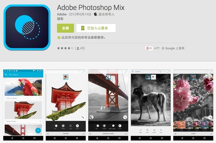 事实上,Adobe 之前就在 Android 平台上发布过 Photoshop Touch 以及 Photoshop Express。Photoshop Express 主要功能是添加滤镜,而 Photoshop Touch 则尽可能保留 Photoshop 的功能。Photoshop Mix 上线后,Photoshop Touch 在 Google Play Store 上已经搜不到了。