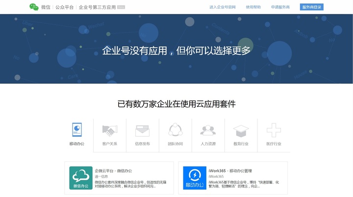 通过企业号的安全机制,企业可以实现第三方应用的即插即用。目前,已经有数万家企业在使用第三方应用,其中频繁使用的应用将在第三方应用官网被自动展示。