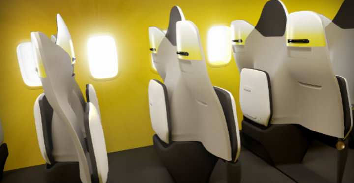 如何高效利用舱内空间,让人在乘坐廉价航空时也能感觉舒适,法国 Zodiac 航空公司专门为此设计出了一套座椅,并将此项目命名为 HD 31(High Density at 31-inch spacing,31 英寸的高密度空间)。