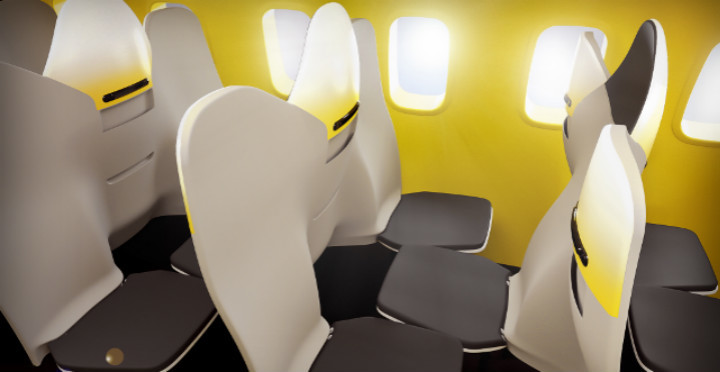 不止是对乘客个人,对于低成本航空公司来说,这一设计也有很多优点。通过这种方式,机舱内可以增加三十个座椅,每个人的平均空间也可以增加 15%。有效空间内搭载更多乘客,高密度情况下又照顾到乘客的飞行体验,何乐而不为。