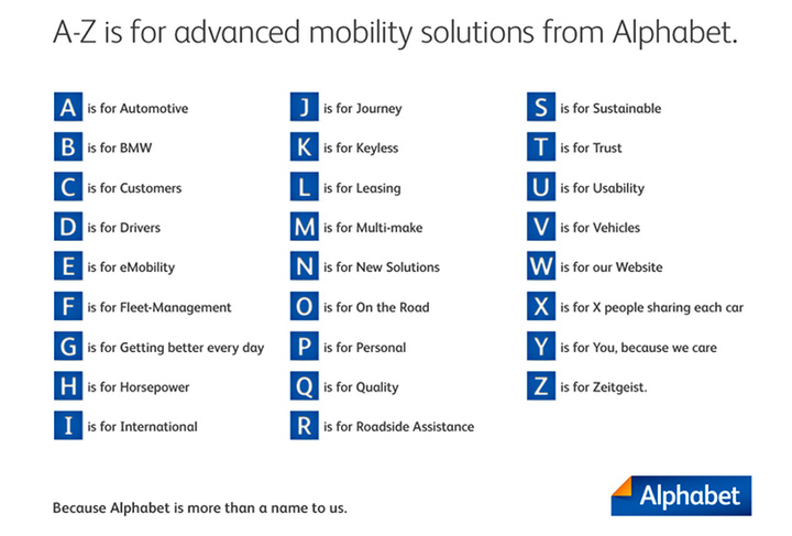 不只是 Google,宝马说他们的 Alphabet 也有含义