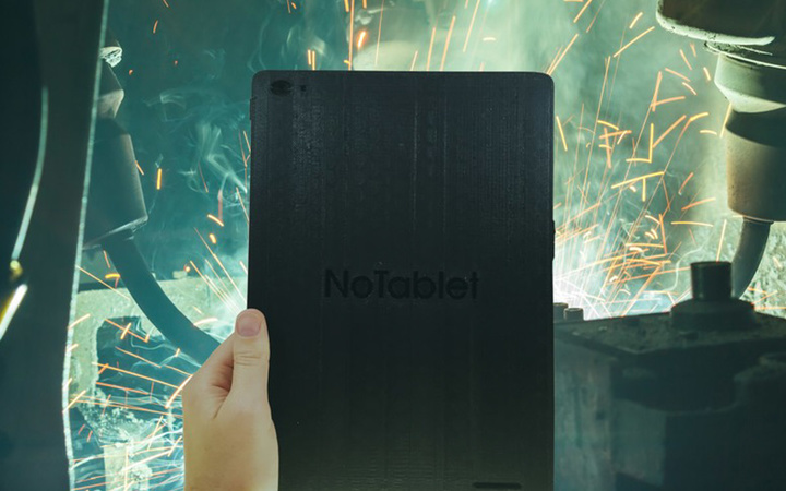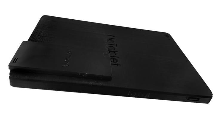 远远不止这样。TheNoPhone 公司在 iPad Pro 推出之际,也推出了自己的“板砖”产品—— NoTablet。之所以叫板砖,顾名思义就是平板电脑造型的砖了。当然,他也不会附属你想要的东西。例如专属的触控笔啊、Keyboard Cover 等等的。比起 NoPhone Zero,Notablet 会把机身背部的细节保留下来,摄像头、单边扬声器还有大大的 “NoTablet” 标志,这些还是有的。