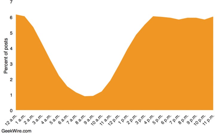 - 在热门图片中,超过 35% 的照片是在晚间六点过后发出。