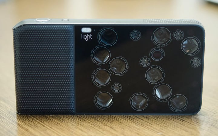 这种老掉牙的口号我们已经听太多了,但是依旧有厂商怀着这个梦想。Light 这个团队用一个16 镜头的狂野方案推出一款卡片相机。他们打算用超出常理的传感器数量和“计算摄影”的方式,和单反相机比画质。