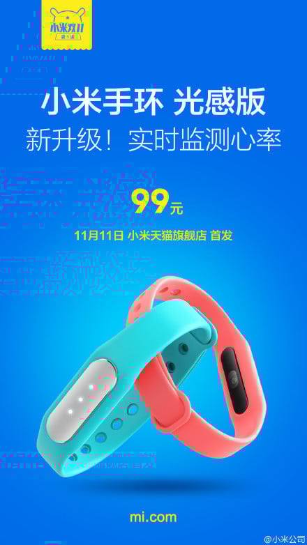 今天早上,小米正式在官网、微博、微信发布小米手环光感版,售价 99 元,将于 11 月 11 日在小米天猫旗舰店首发。