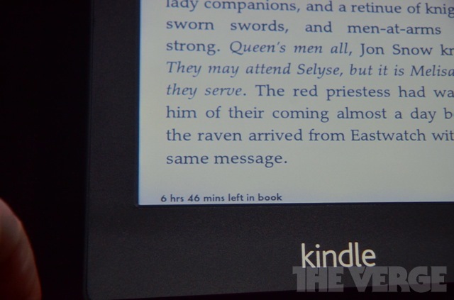 贝索斯正在演示更高的分辨率:极小的字体仍然可以非常清楚地显示。在屏幕上上下滑动即可调节屏幕亮度。