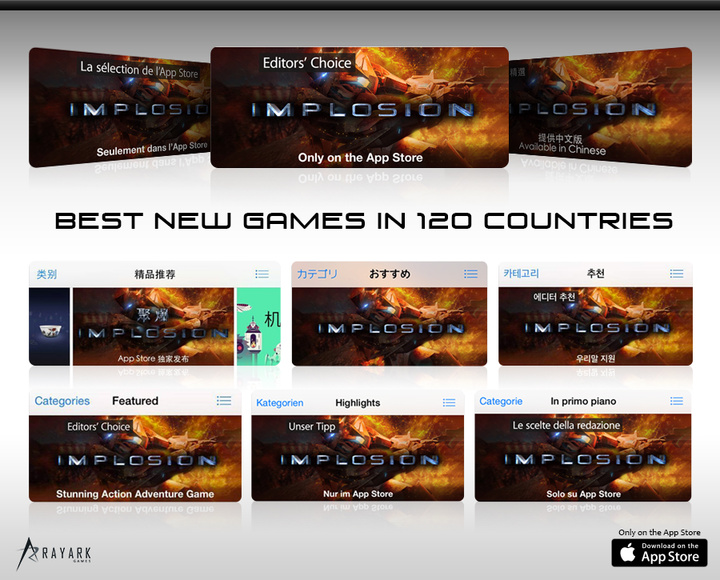 Implosion 刚上线就得到了全世界玩家的热烈欢迎,苹果更是在 120 个国家/地区的 App Store 首页推荐该游戏。雷亚此前的游戏作品 Cytus、Deemo、Mandora 已经为其赢得了「雷亚出品,必属精品」的口碑,而 Implosion 的面世更是将雷亚的水平带到了一个新的层级。