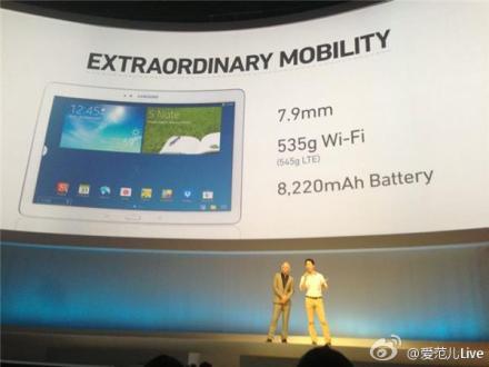 三星想要做的是不同类型的产品,满足各种用户的需要。Note 10.1 2014 版本将会有Note 3 的大部分功能。535g 重,Wi-Fi 10.1, 8,220mAh 电池, 厚度 7.9mm。
