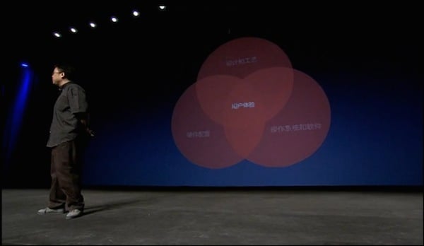讲了好久音质。然后提了一个问题:为什么音质从来不是卖点却要如此重视?老罗说,无他,因为我们热爱音乐(学乔布斯啊)。