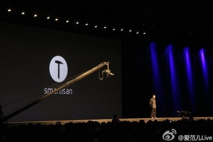 好了,相声开始,说起了名字,锤子这个名字经常被人误解,甚至某些地方是脏话,于是干脆叫 Smartisan,为了国际化。首款手机名字叫 T1。