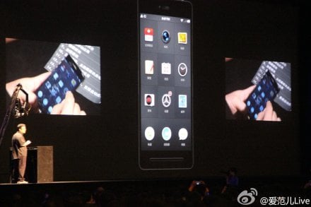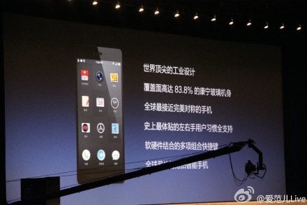 Smartisan T1 的单手操作解决方案:屏幕 右上角无法点到,可以下拉悬停,现场一片呼声,不过这个功能魅族已经有了。