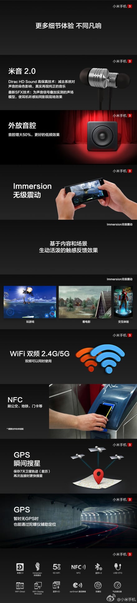 关于小米机身的更多信息:镁铝合金一体框架,压铸成型,高质量音腔和天线。重量 145g,厚度 8.1mm。