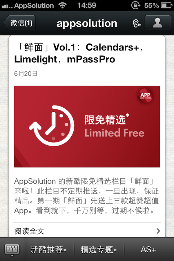 自我们开始推送新酷 App 以来,我们收到许多朋友的反馈,希望 AppSolution 能够增加限免推荐的栏目。今天,AppSolution 的限免推荐栏目「鲜面」就正式启动了 ^_^